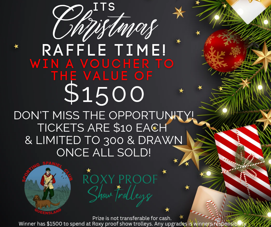 DRAWN ONCE ALL SOLD -WINNER WILL BE CONTACTED VIA EMAIL OR PH, AND ALSO PUBLISHED ON Sporting Spaniel Club Of QLD FACEBOOK PAGE