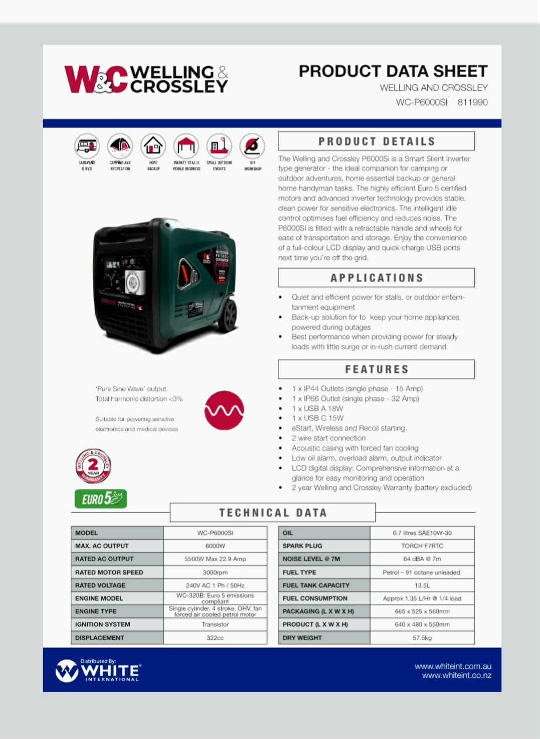 The latest addition to the Welling & Crossley inverter generator range packs a lot of power and features into a neat unit, making these an economical choice for your power needs.