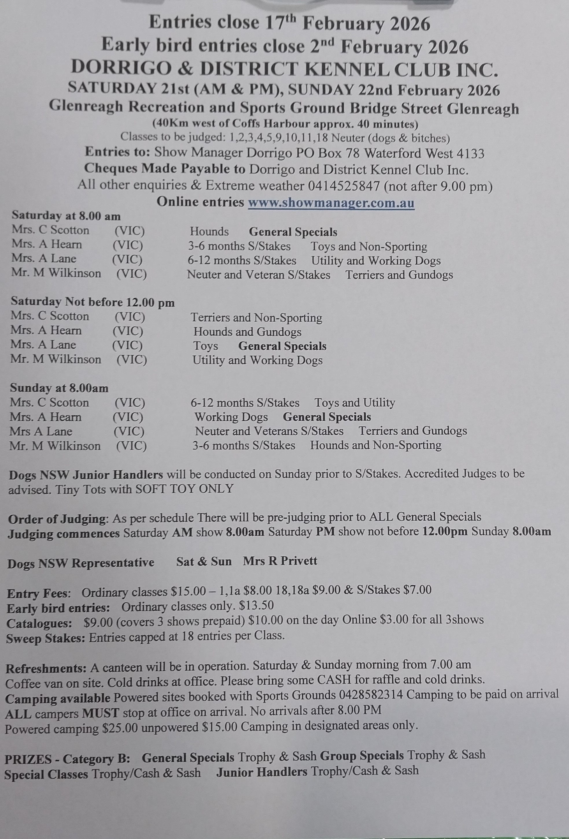 Dorrigo & District Kennel Club Inc (AM Show) - Championship Show, Sat 21 Feb 2026