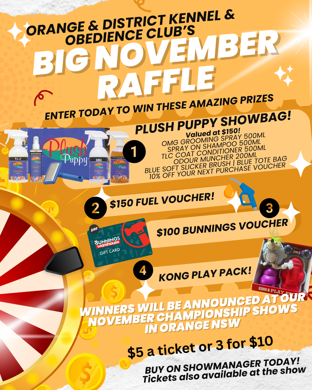 ???? ORANGE & DISTRICT KENNEL & OBEDIENCE CLUB’S BIG NOVEMBER RAFFLE! ????