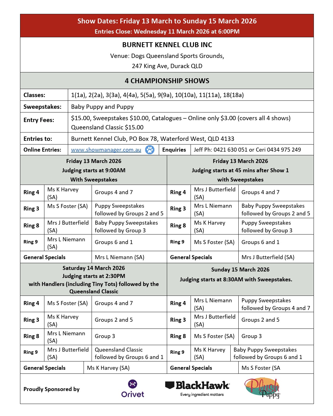 Dogs Queensland Conformation Judges Committee (Mentored Championship Show) (1-4 System)